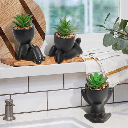 Small Pot Plants – Artificial Aloe with Black Bonsai Figurine and Green Leaves for Indoor Decor