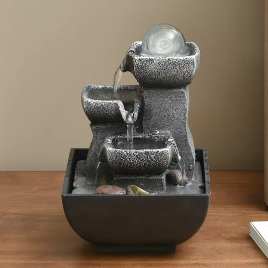Tabletop Water Fountain – With LED Lights, Indoor Zen Mini Waterfall for Desk Decor
