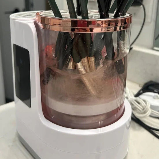 Cleaning makeup brushes by hand is slow, messy, and damages expensive tools.