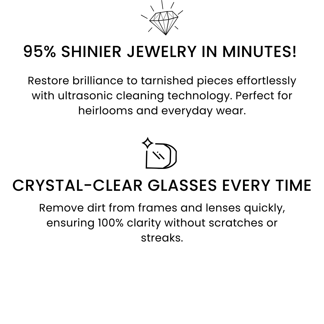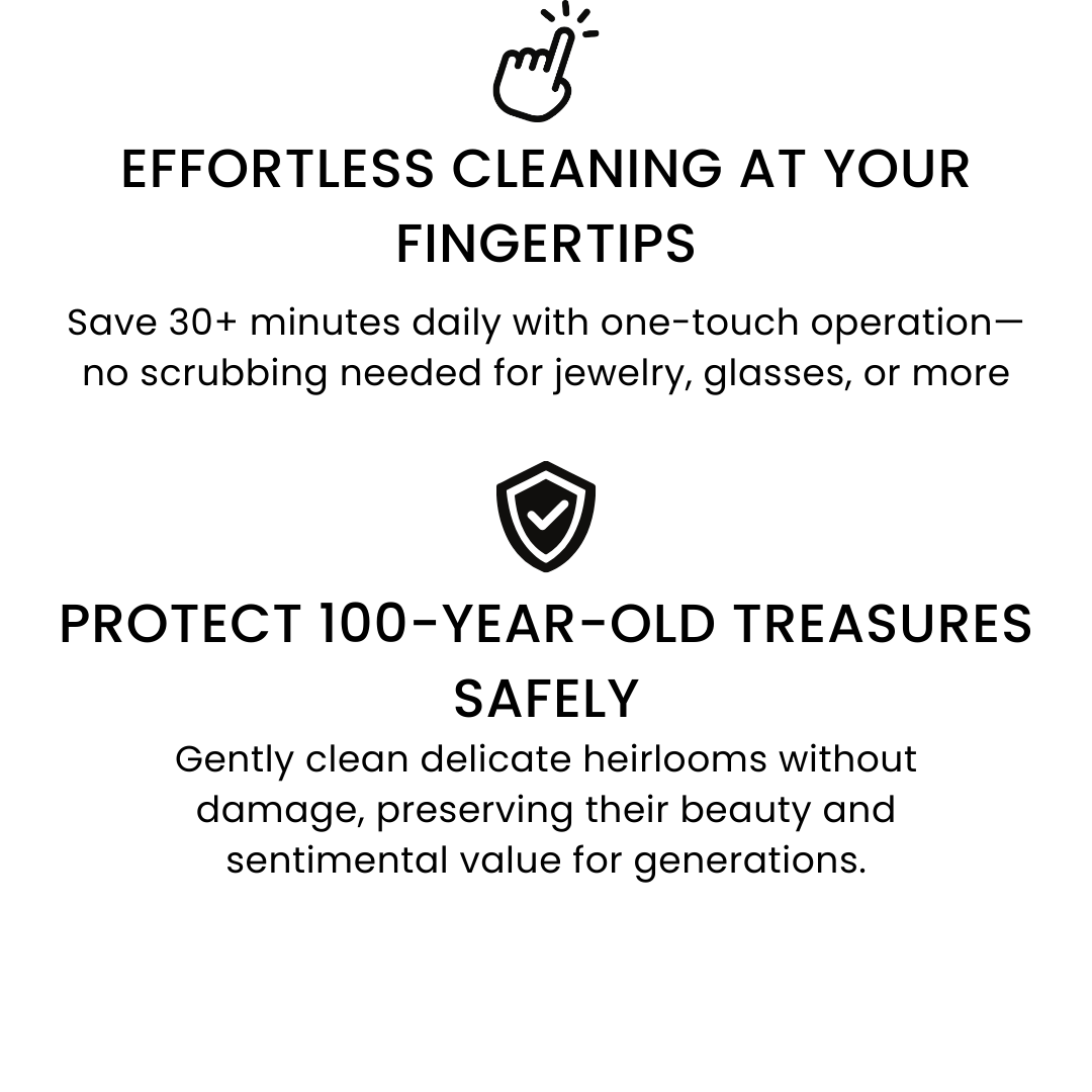 Your jewelry and glasses have lost their sparkle, tarnished by years of dirt trapped in hard-to-reach crevices. Hand cleaning is tedious, ineffective, and risks damaging delicate pieces.