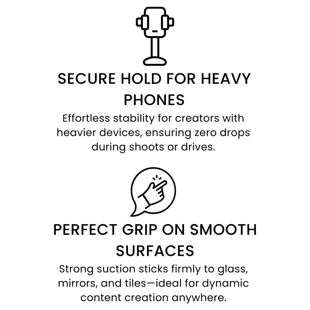 Unlike traditional mounts that fail or lack flexibility, PhoniMount™ is designed for content creators. Its reinforced dual sided TPE suction and powerful N52 magnets keep your phone securely in place—whether filming, cooking, or capturing dynamic shots.